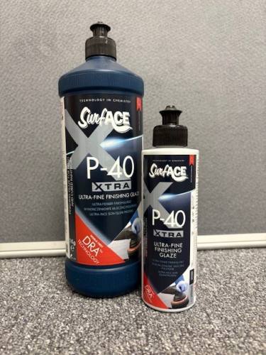 NEW! P-40 Xtra Ultra-Fine Finishing Glaze is a specially formulated ultra-fine compound using the latest DRA™ (Dynamic Response Abrasion) technology incorporating micro-precision oxides. Designed and formulated for fast and easy final finish polishing to remove holograms, swirls and light defects.